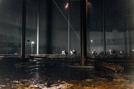 The largest of the 12 tanks at the San Lucian plant, which were previously used for storing Heavy Fuel Oil, has been cleaned. It took around a month to empty and clean this biggest tank.